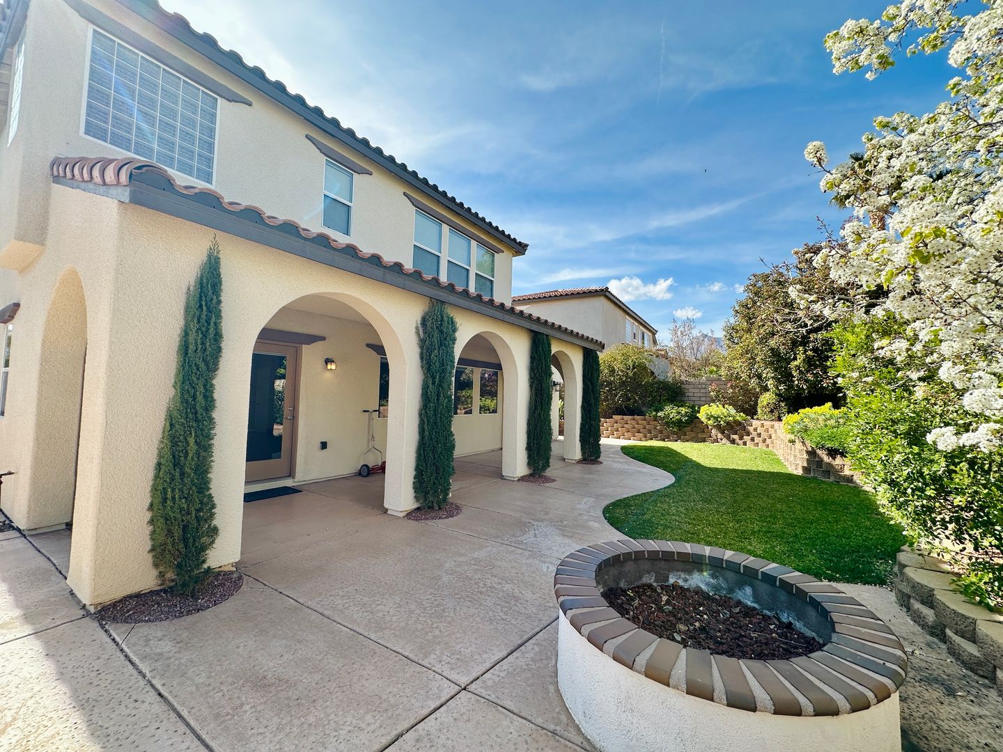Beautifully updated 4 bedroom home in gated Summerlin community! Home features a front courtyard entrance and huge living room with a den perfect for an office or gaming room! There is a bedroom and full bathroom downstairs! The kitchen has a grand island with built in stainless steel appliances! The backyard is very spacious with a covered patio and tall landscaping for a private retreat!