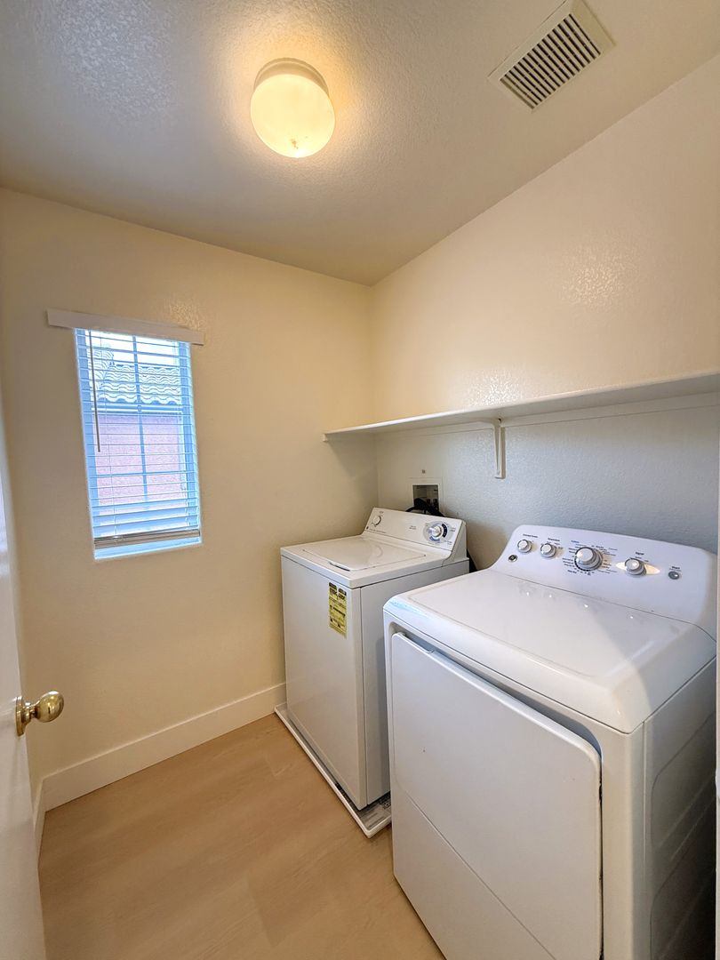 Open floor plan home with brand new vinyl plank flooring throughout! Bedroom & Bathroom downstairs! 4 Bed 3 Bath home that's great room for entertaining, with a covered patio, a bedroom and bath down stairs, a loft on the second floor, a separate shower and tub in the master bedroom, and two closets in the master bedroom! New fridge and dishwasher to be installed!